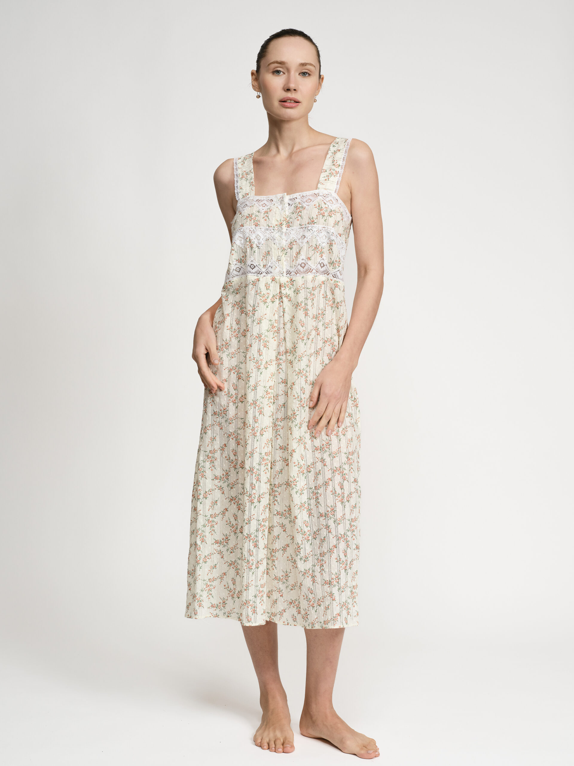 - Camisón de plumety estampado con encaje en delantero. Pliegue delantero y botones que se pueden utilizar para lactancia. Tirante ancho.